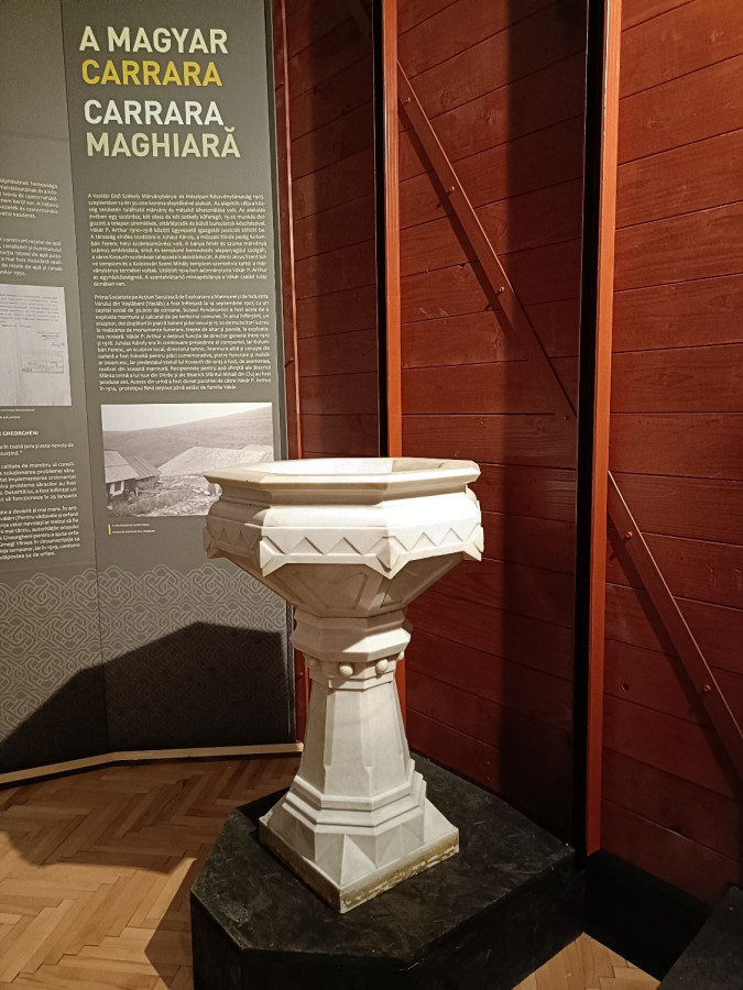 A márványbánya emlékét és az egyik szenteltvíztartó mintapéldányát a Vákár-család budapesti lakásán őrizte száz éven át, miután 1923-ban politikai üldöztetés miatt Vákár P. Arthur oda költözött Gyergyószentmiklósról. A jelentős helytörténeti értékeket megőrző Vákár család hagyatékából 2023-ban nyitottunk kiállítást Fölemelt fővel címmel, a Magyar Géniusz Program keretében. A kiállítást abban az évben az Év Kiállítása megmérettetés során dicséretben részesítették. A kiállítással együtt elkezdődött a Vákár család szellemi és anyagi értékeinek rehabilitása, a Tarisznyás Márton Múzeum számos erőfeszítést tesz azóta is, hogy a lehető legtöbb dokumentum, fotó, műtárgy hazakerüljön Gyergyószentmiklósra. Az örökös, ifjabb Vákár Tibor számos értékes tételt adományozott múzeumunknak, azonban néhány értékes műtárgyat csak megvételre tudott ajánlani. Így a szóban forgó márvány szenteltvíztartót is egy bizonyos pénzösszeg ellenében ajánlotta fel számunkra. Ezen pályázatunk során sikerült a műtárgyat saját forrásunkból kiegészítve megvásárolni.